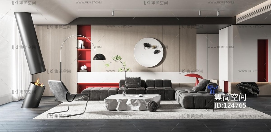 现代高级灰色客厅 3d模型下载 [模型ID:124765]
