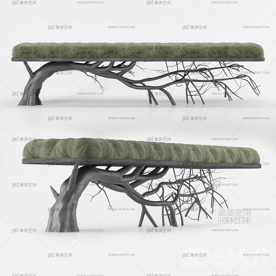 现代树簇绒树枝干支长凳,坐凳长条凳 3d模型下载 [模型ID:124811]