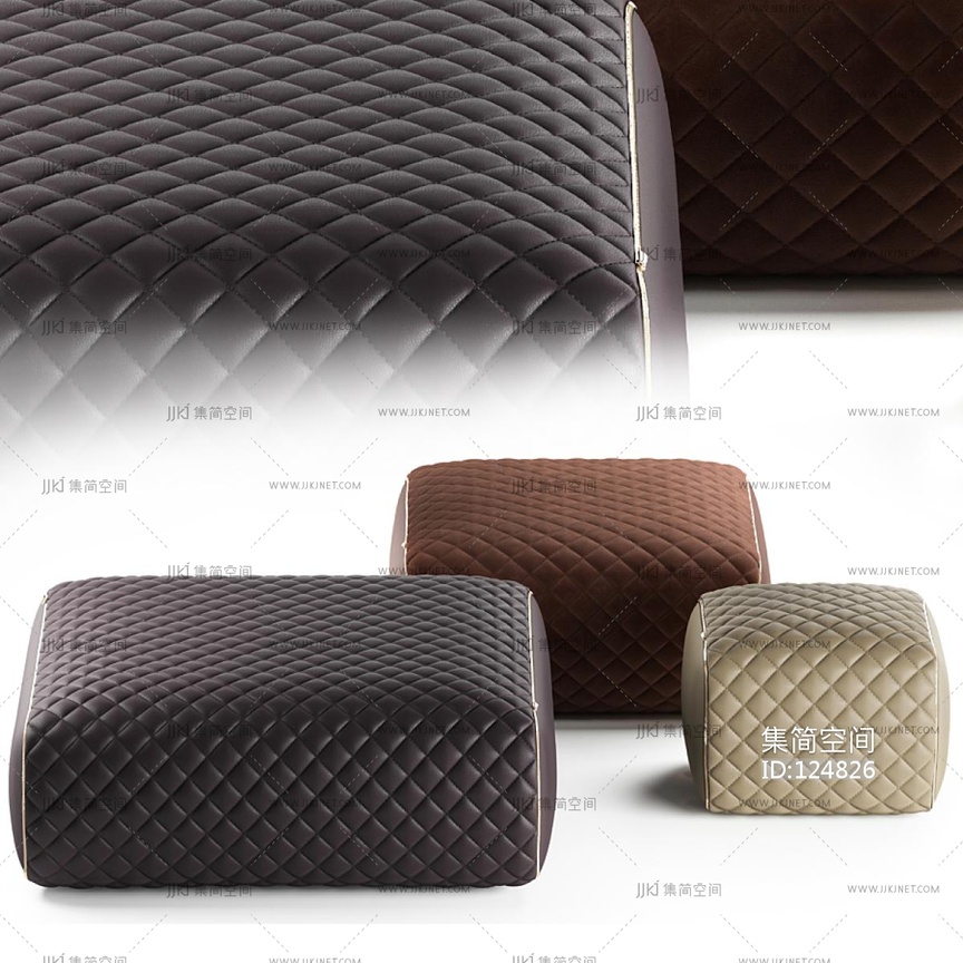 皮革沙发凳,皮墩方墩 3d模型下载 [模型ID:124826]