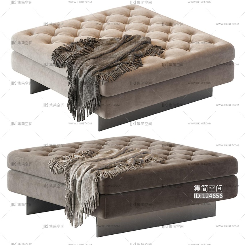 现代布艺方形脚踏 3d模型下载 [模型ID:124856]