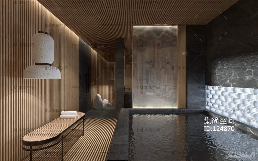 日式轻奢洗浴SPA淋浴间 3d模型下载 [模型ID:124870]