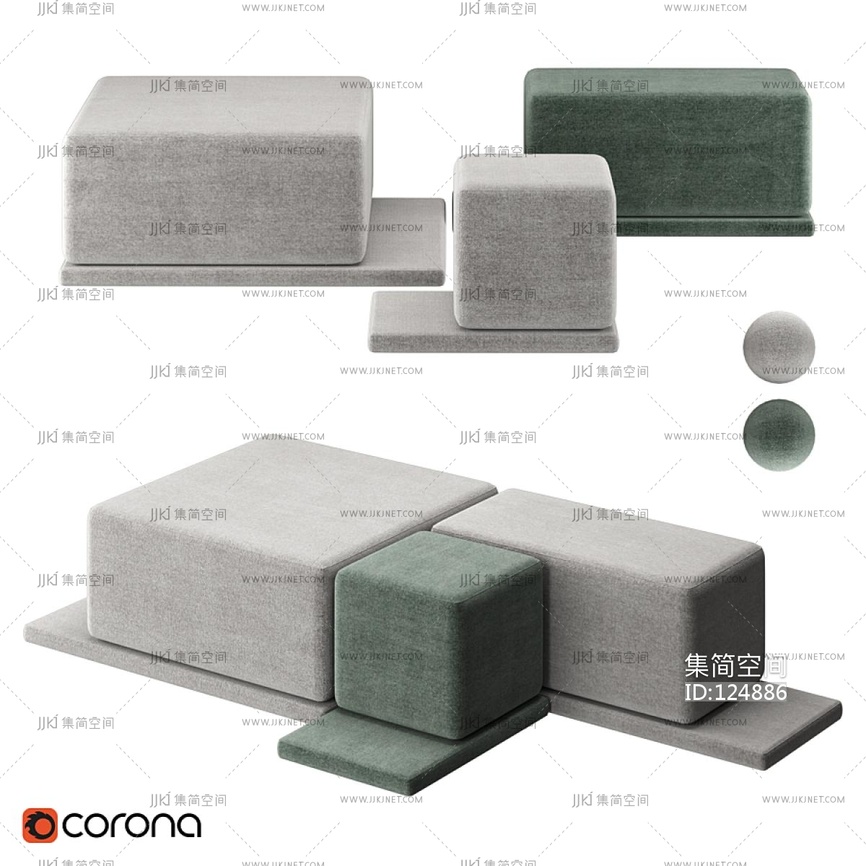 现代布艺方形沙发凳 3d模型下载 [模型ID:124886]