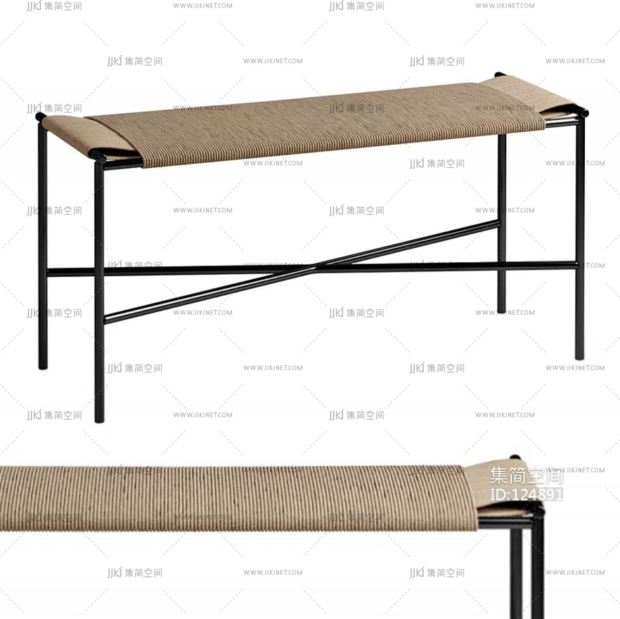 现代金属绳编长凳 3d模型下载 [模型ID:124891]