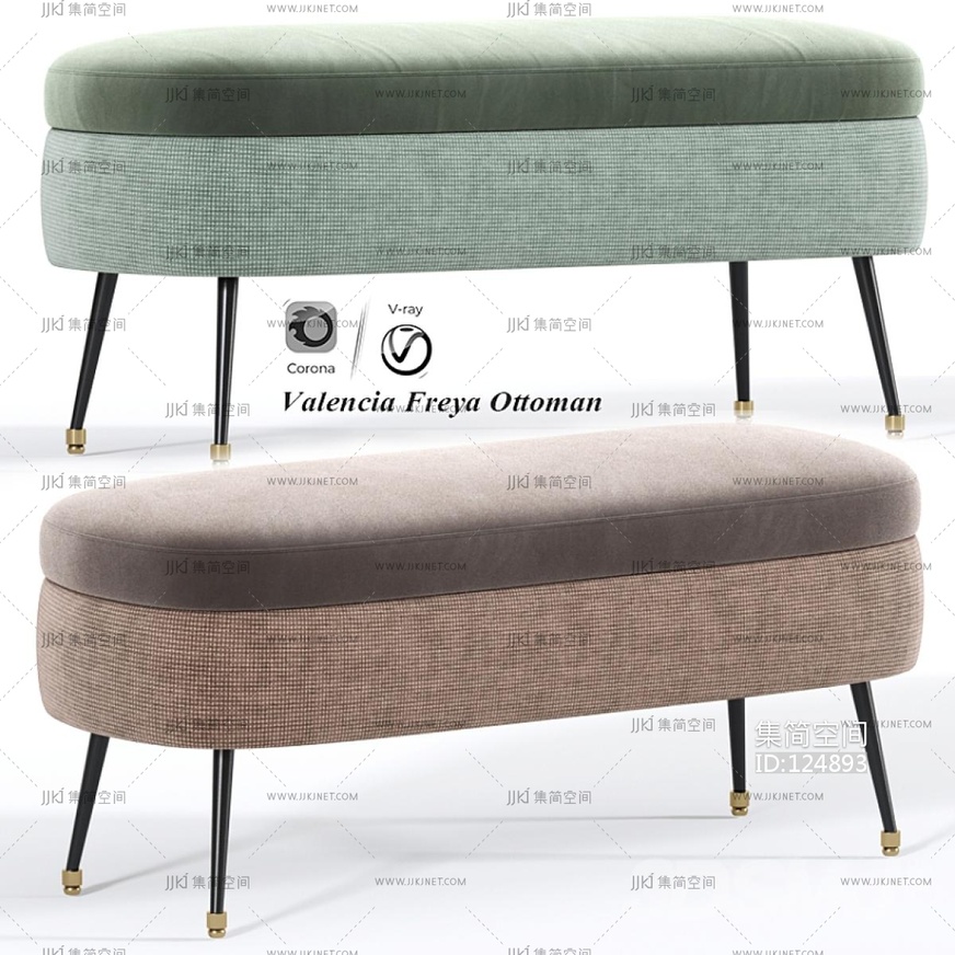 现代布艺长条凳 3d模型下载 [模型ID:124893]