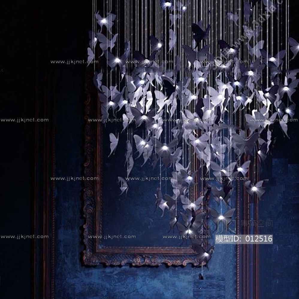 04后现代蝴蝶群华丽装饰吊灯 3d模型下载