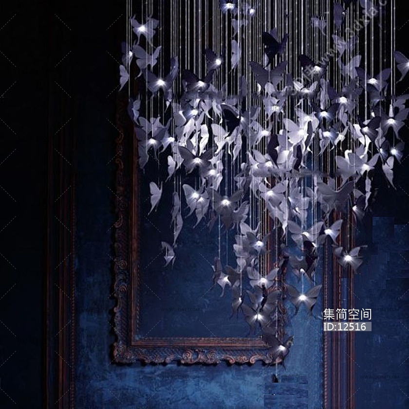 04后现代蝴蝶群华丽装饰吊灯 3d模型下载 [模型ID:12516]