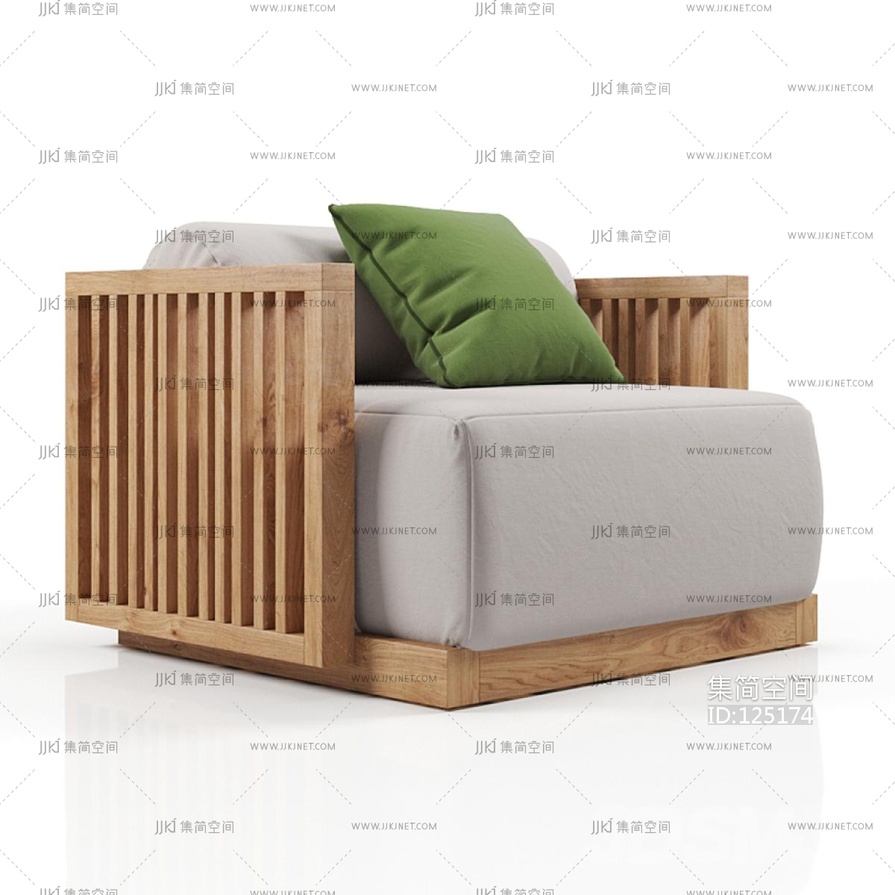 Poltron 布艺原木实木单人沙发,休闲沙发 3d模型下载 [模型ID:125174]