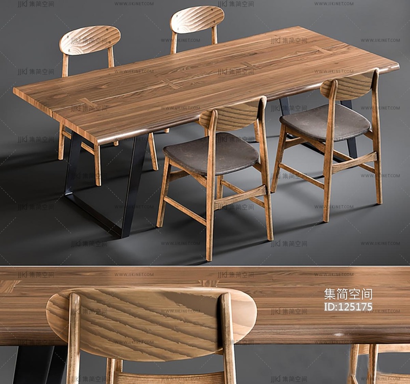 北欧原木实木餐桌椅 3d模型下载 [模型ID:125175]