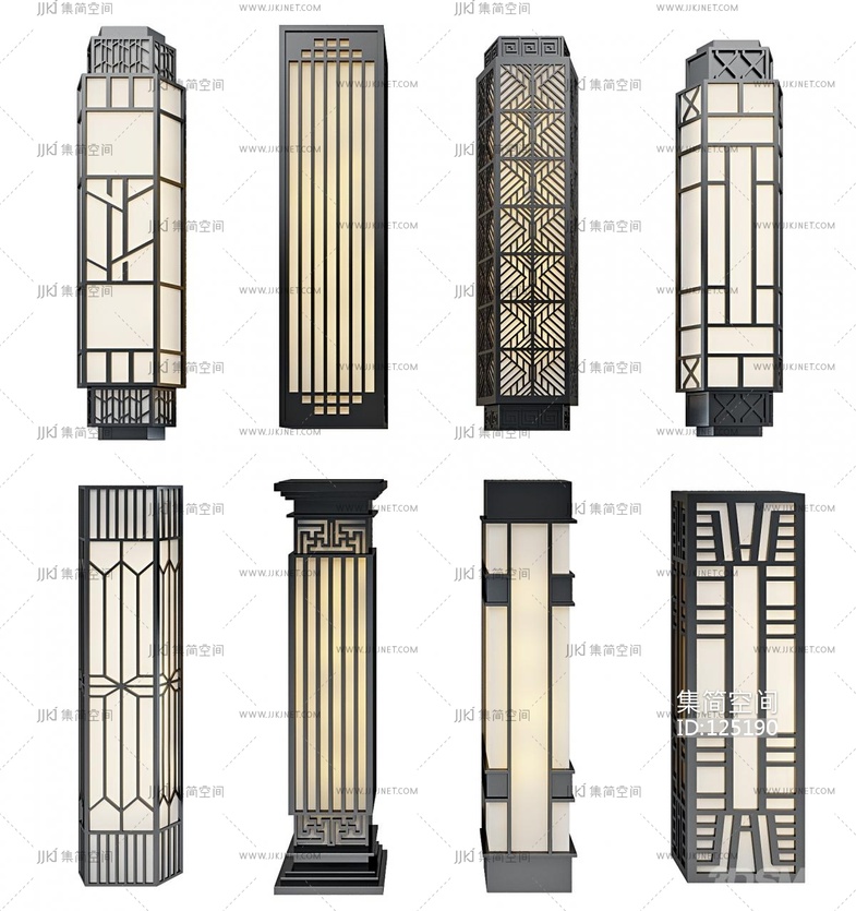 新中式日式铁艺长条形壁灯 3d模型下载 [模型ID:125190]
