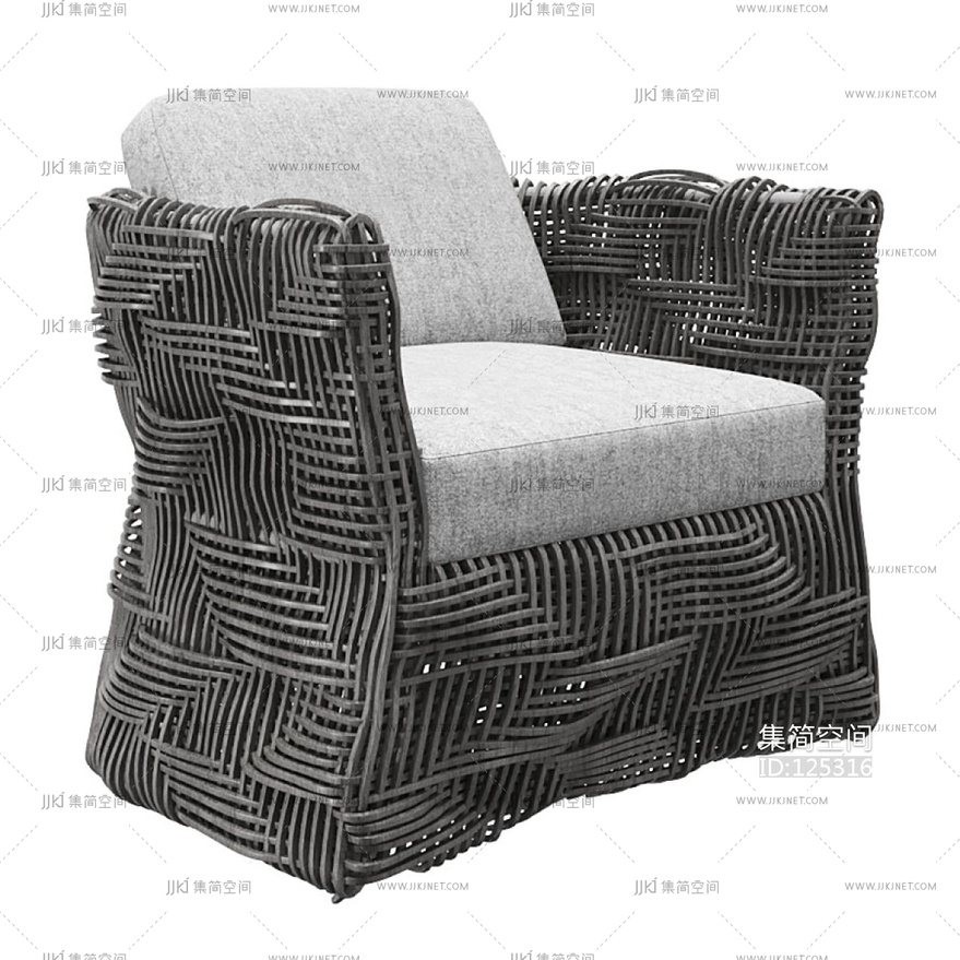 现代户外藤编沙发 3d模型下载 [模型ID:125316]