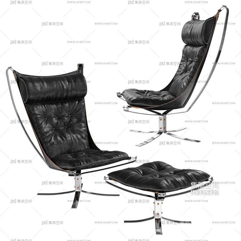 猎鹰镀铬椅和脚凳 3d模型下载 [模型ID:125327]