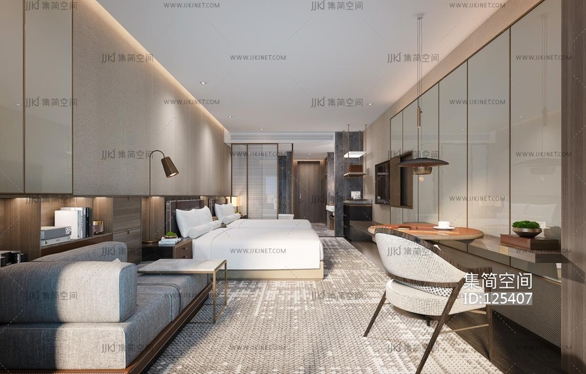 现代酒店客房标准间 3d模型下载 [模型ID:125407]