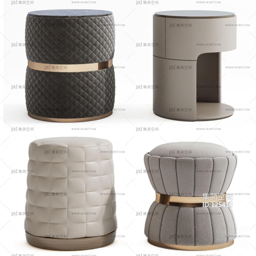现代皮革圆凳 3d模型下载 [模型ID:125414]