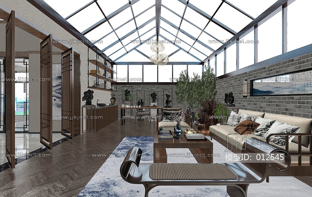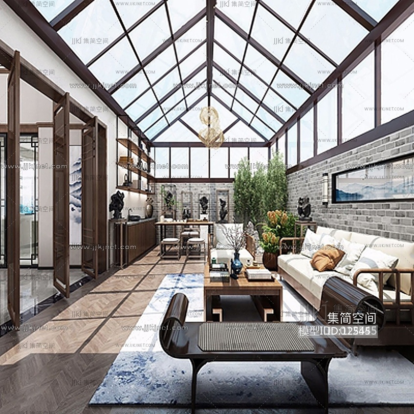 504中式阳台中式沙发茶几组合石头摆件 3d模型下载 [模型ID:12545]