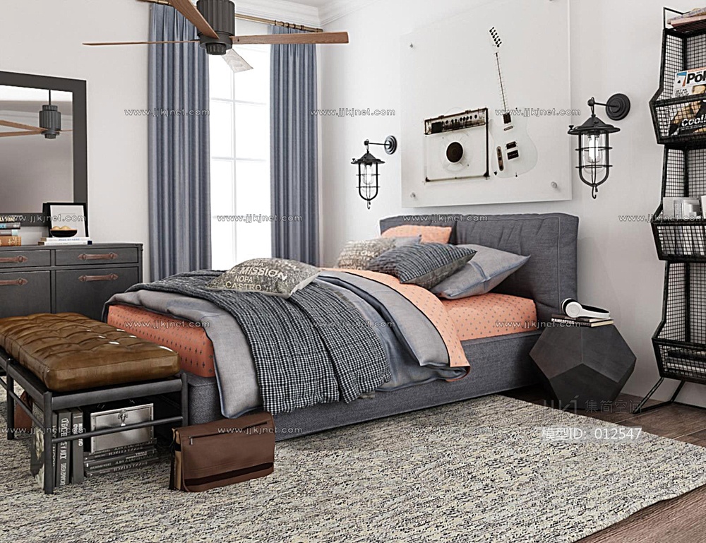 工业儿童房床壁灯装饰柜风扇灯 3d模型下载 [模型ID:12547]