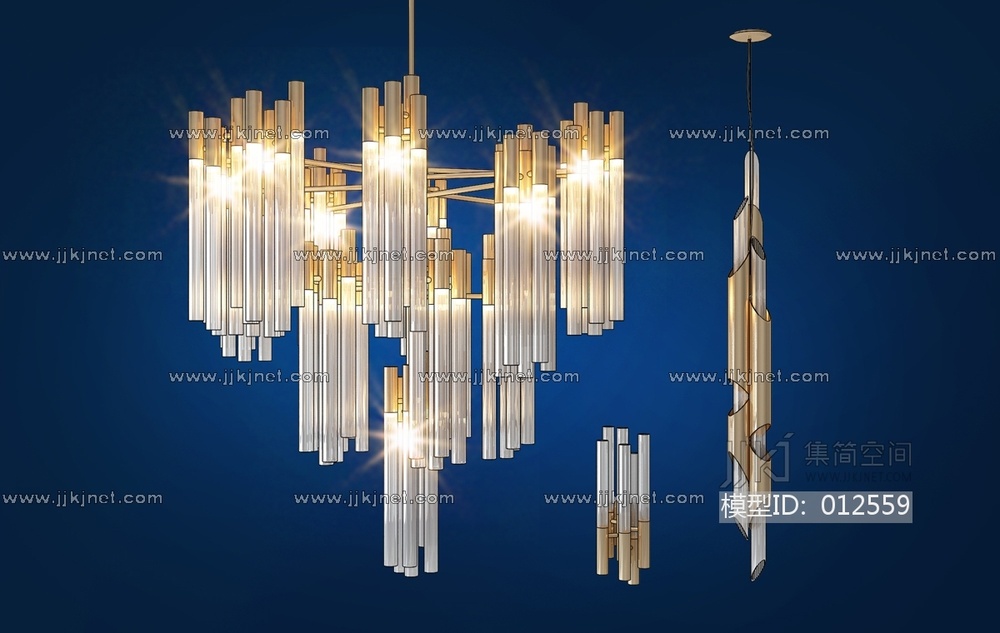 H17-1203现代金属水晶吊灯 3d模型下载 [模型ID:12559]