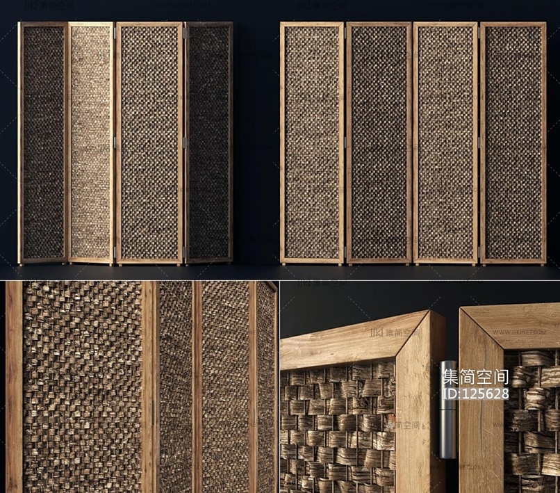 新中式东南亚木屏风,装饰隔断 3d模型下载 [模型ID:125628]