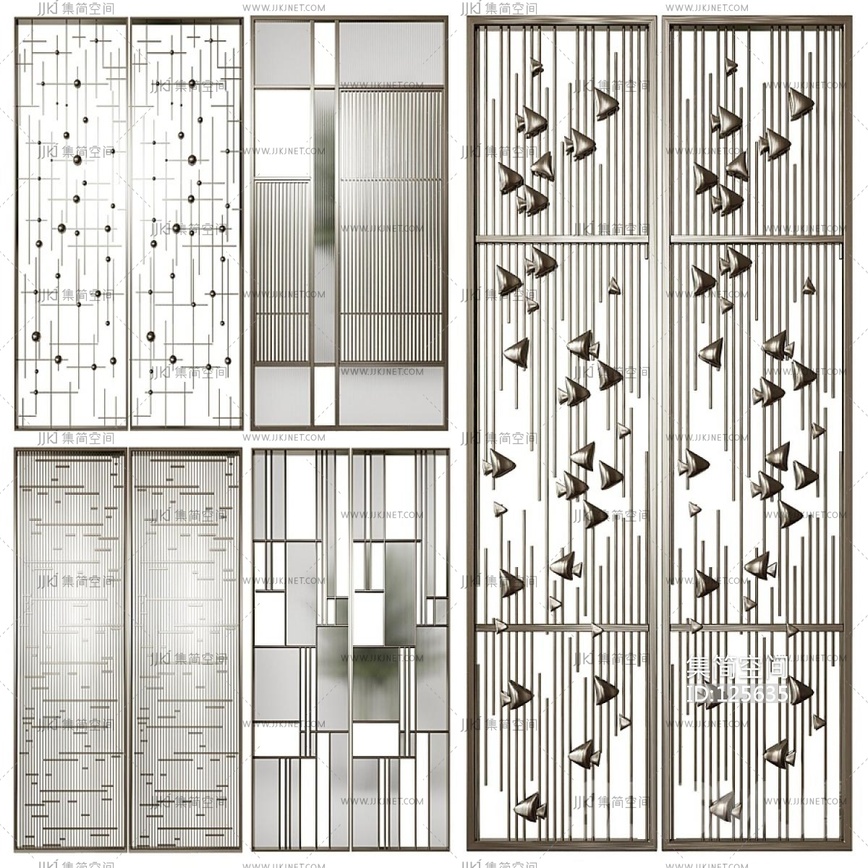现代金属玻璃艺术屏风隔断 3d模型下载 [模型ID:125635]