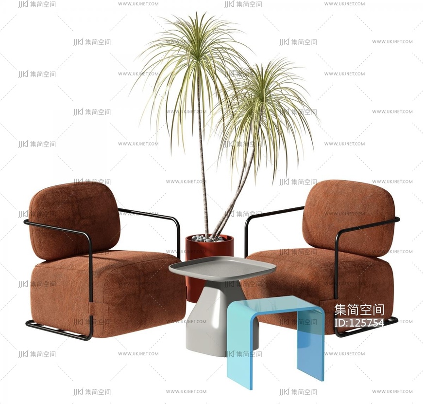 现代单人休闲沙发茶几 3d模型下载 [模型ID:125754]