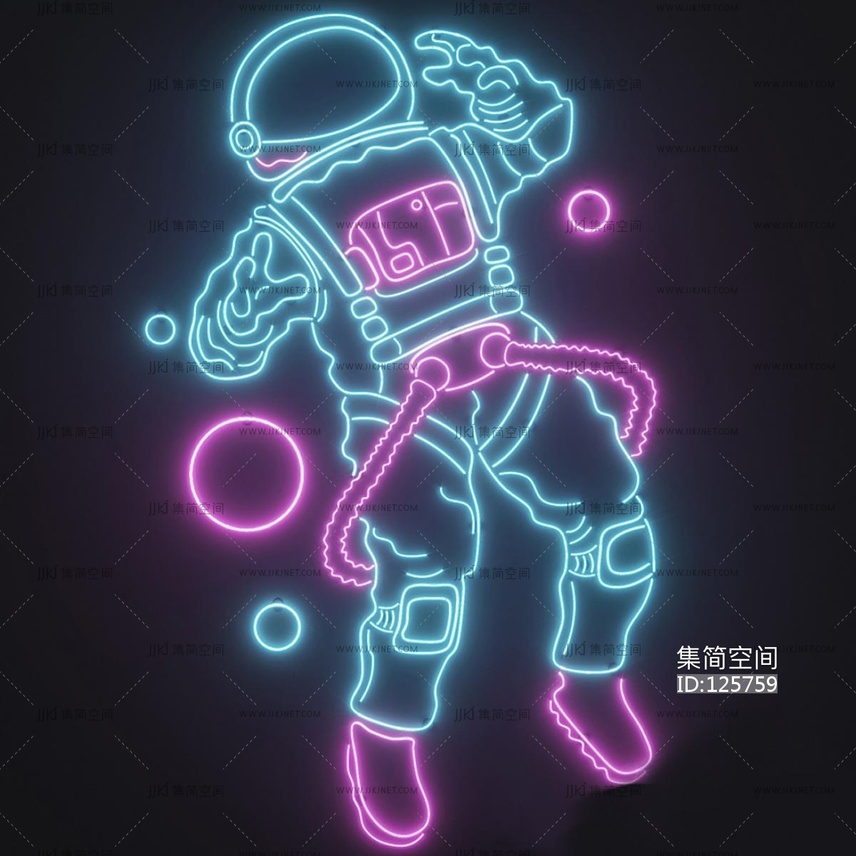 现代宇航员太空人霓虹灯彩灯 3d模型下载 [模型ID:125759]