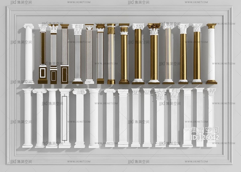 欧式石膏镀金罗马柱,柱子 3d模型下载 [模型ID:126042]