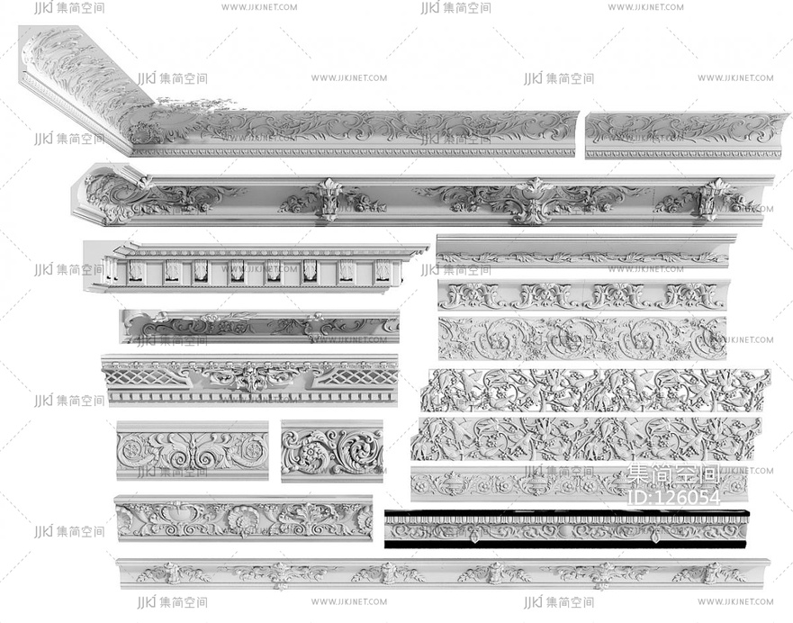 欧式法式石膏线角线,雕花 3d模型下载 [模型ID:126054]