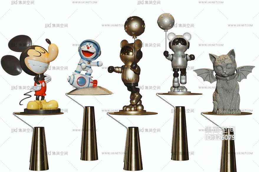 现代米老鼠机器猫潮玩雕塑饰品摆件 3d模型下载 [模型ID:126079]
