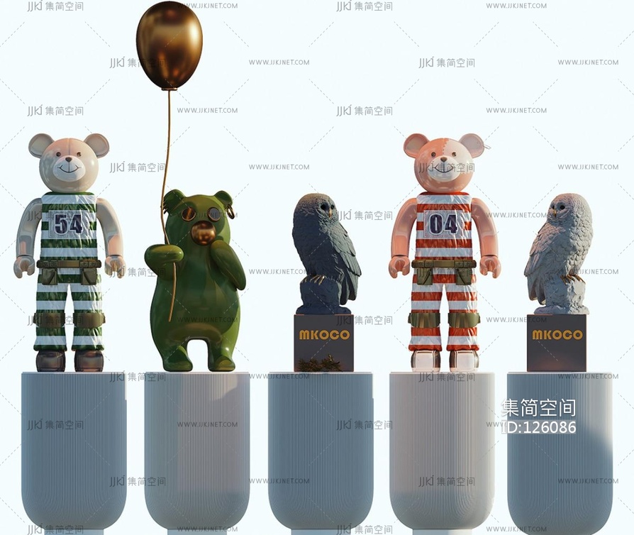 现代猫头鹰小熊暴力熊公仔潮玩雕塑饰品摆件 3d模型下载 [模型ID:126086]