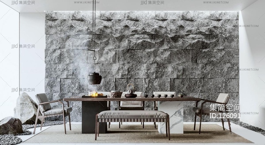 新中式茶桌椅 3d模型下载 [模型ID:126091]
