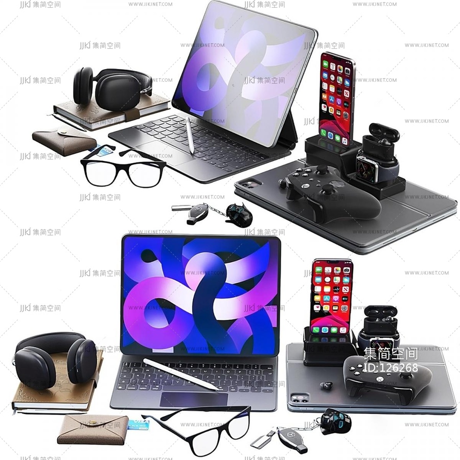 现代办公用品笔记本电脑耳机耳麦 3d模型下载 [模型ID:126268]