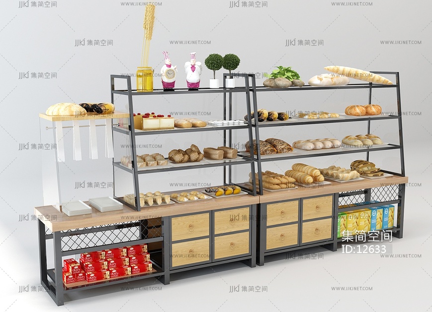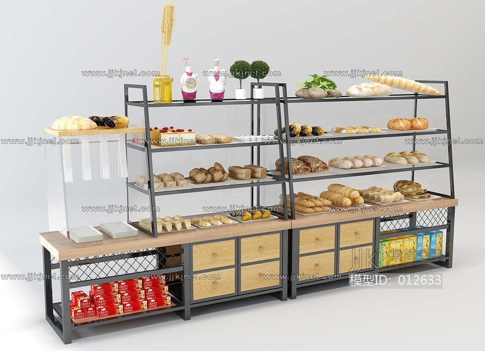 H14-1204现代面包保鲜柜甜品店蛋糕店 3d模型下载 [模型ID:12633]