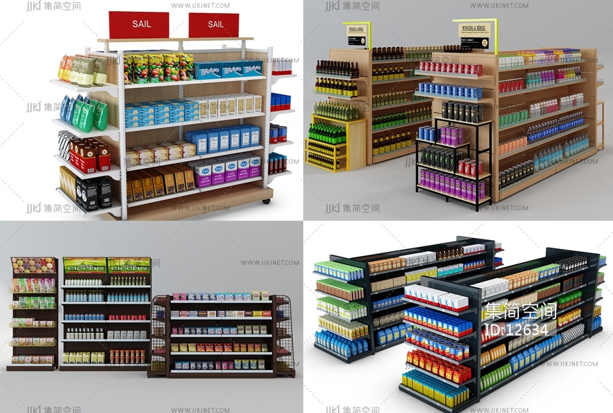 现代超市货架3d模型下载