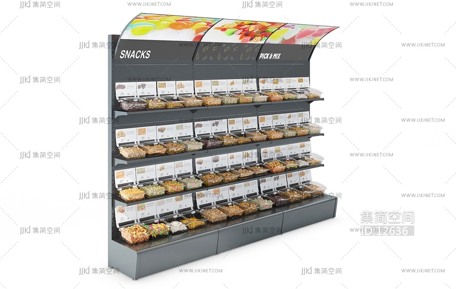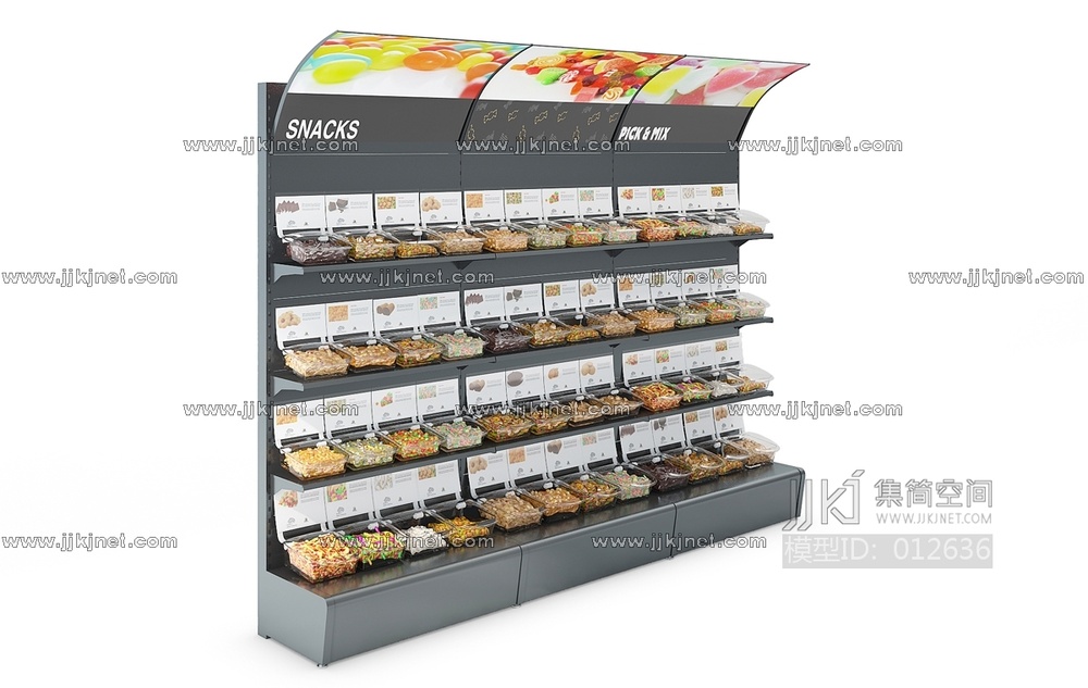 H22-1204现代超市糖果货架 3d模型下载 [模型ID:12636]