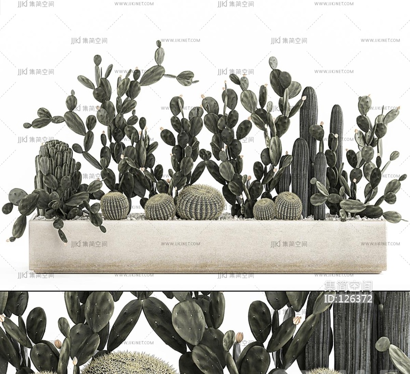 仙人掌仙人球花池花槽 3d模型下载 [模型ID:126372]
