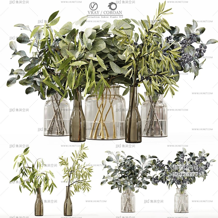 青瓷花盆中的树枝花束,植物插画3D模型cr3d模型下载
