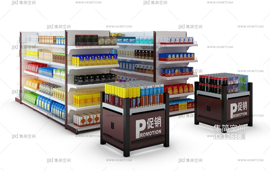 H24-1204现代超市促销台商品货架 3d模型下载 [模型ID:12638]