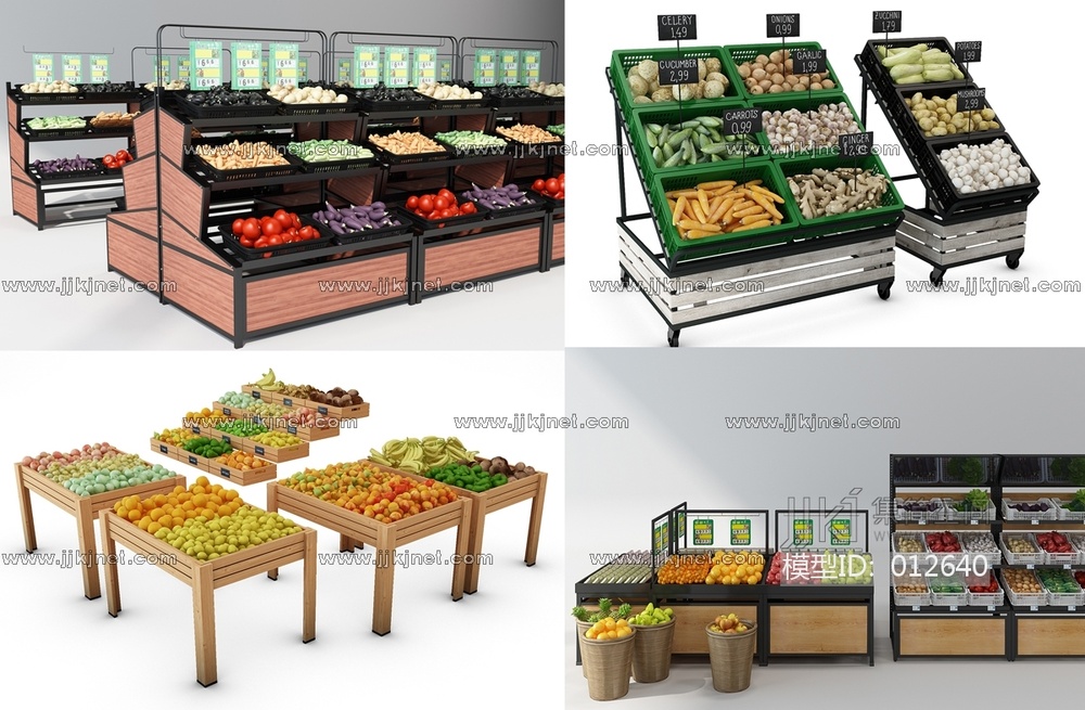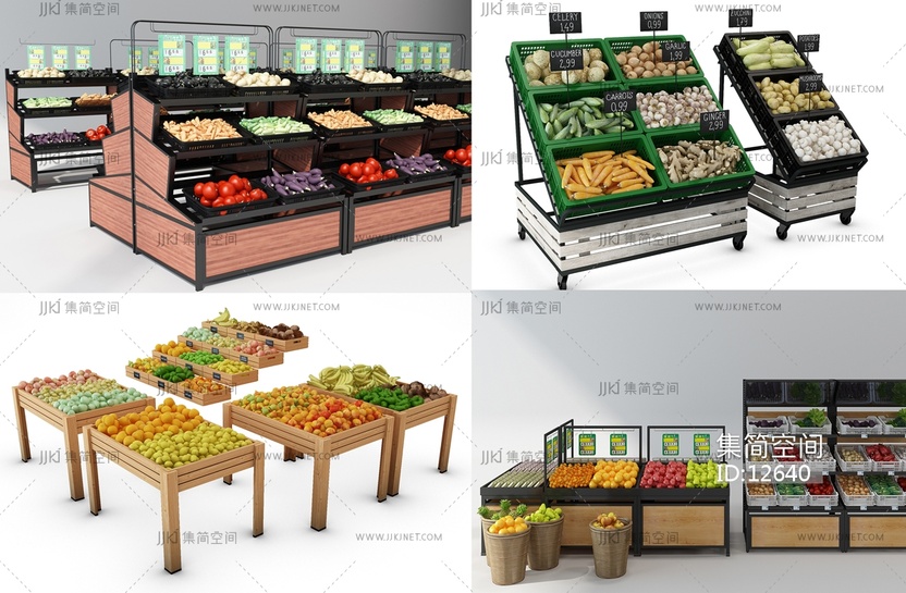 H27-1204现代生鲜超市蔬菜展架货架副本 3d模型下载 [模型ID:12640]