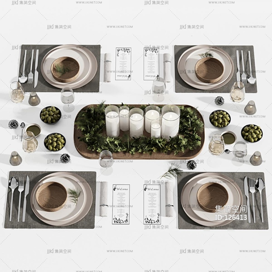 餐具盘子蜡烛烛台,刀叉 3d模型下载 [模型ID:126413]