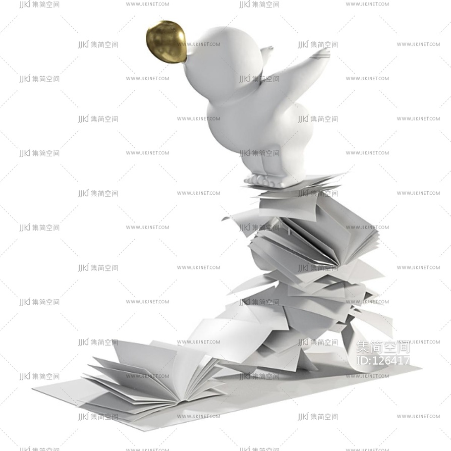 书籍小人雕塑摆件 3d模型下载 [模型ID:126417]