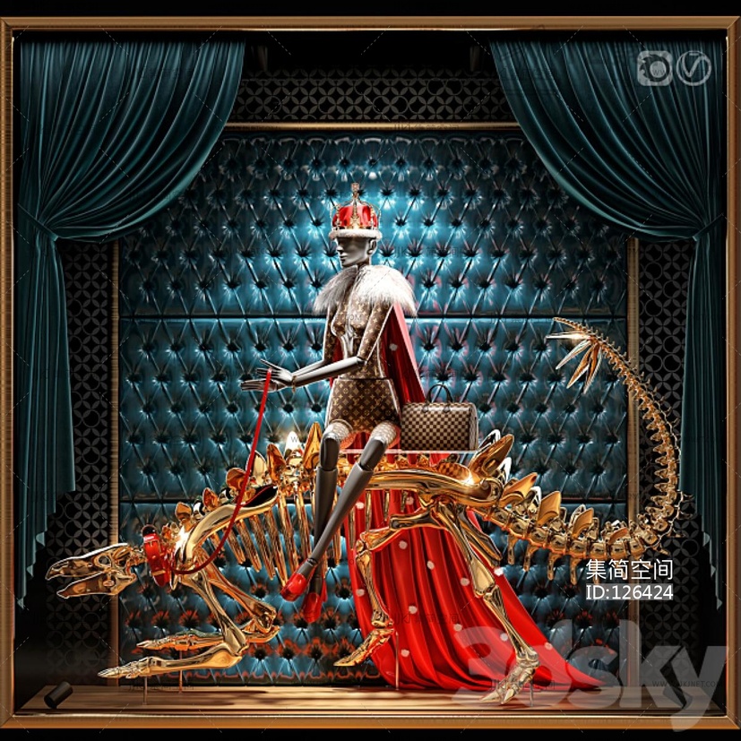 恐龙古架箱包服装店橱窗 3d模型下载 [模型ID:126424]