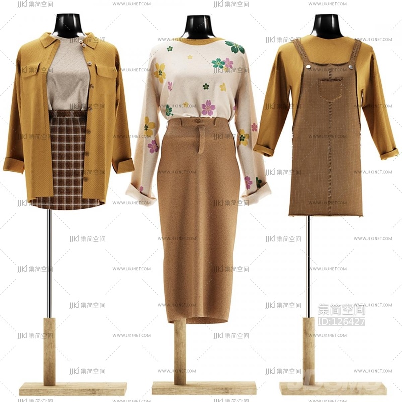04-现代模特_服饰_鞋帽_服装_女装_橱窗_衣服_帽子_外衣_鞋子_代服装店3D模型vrrr3d模型下载