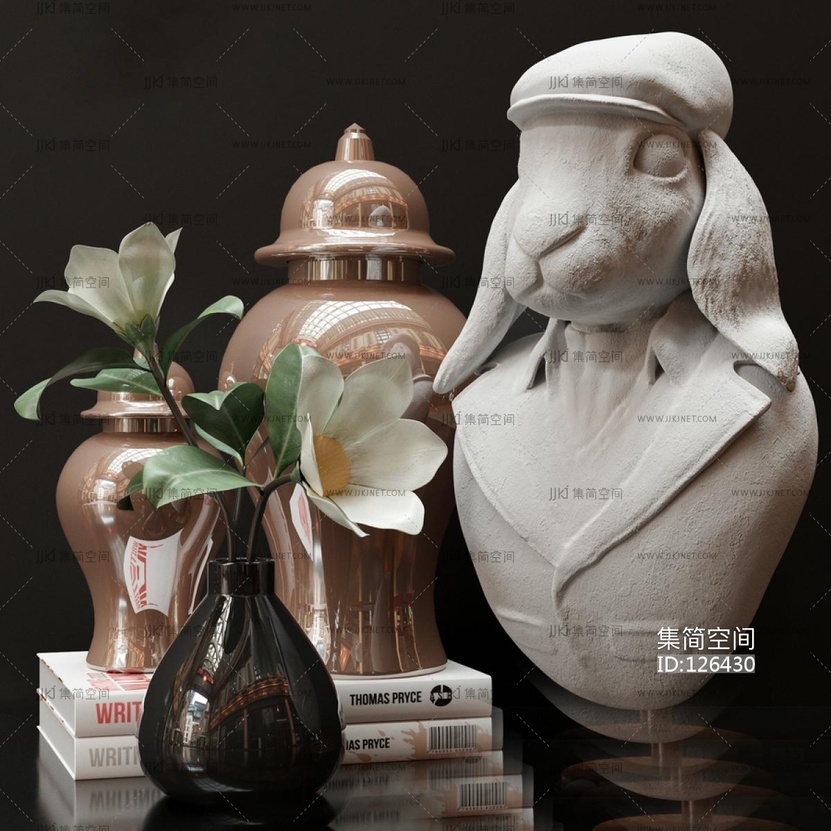 兔子雕塑将军罐摆件 3d模型下载 [模型ID:126430]