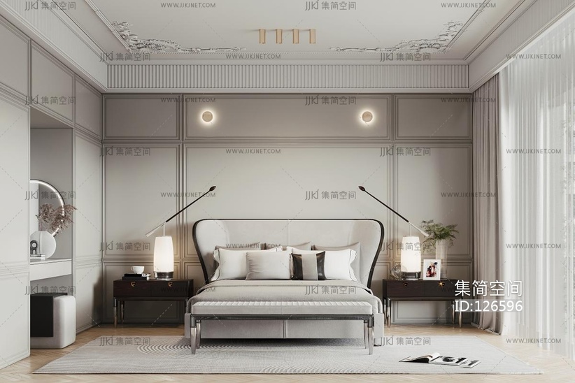 6法式中古家居卧室_主卧_飘窗卧室_高级灰卧室3D模型cr3d模型下载