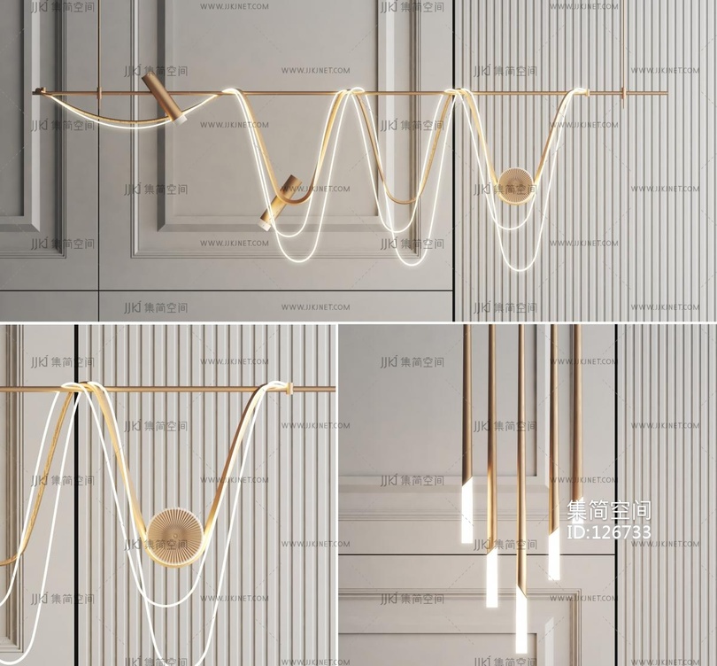 现代吊灯条形吊灯组合 3d模型下载 [模型ID:126733]