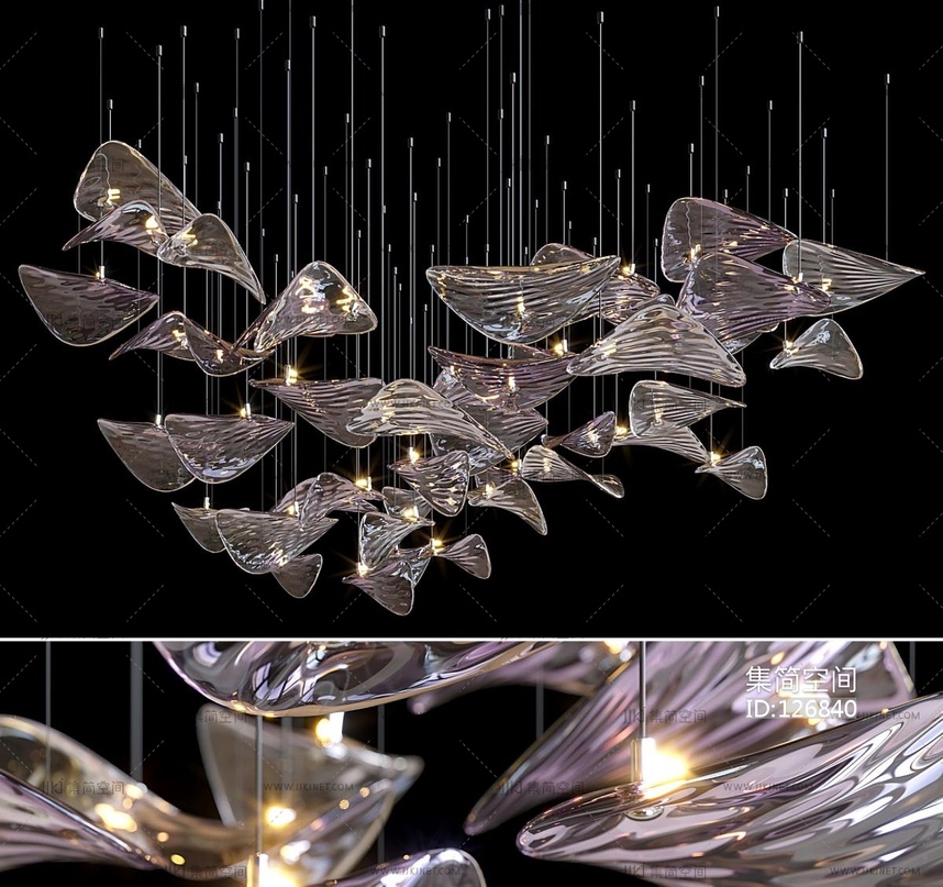 现代水纹树叶玻璃吊灯vc 3d模型下载 [模型ID:126840]