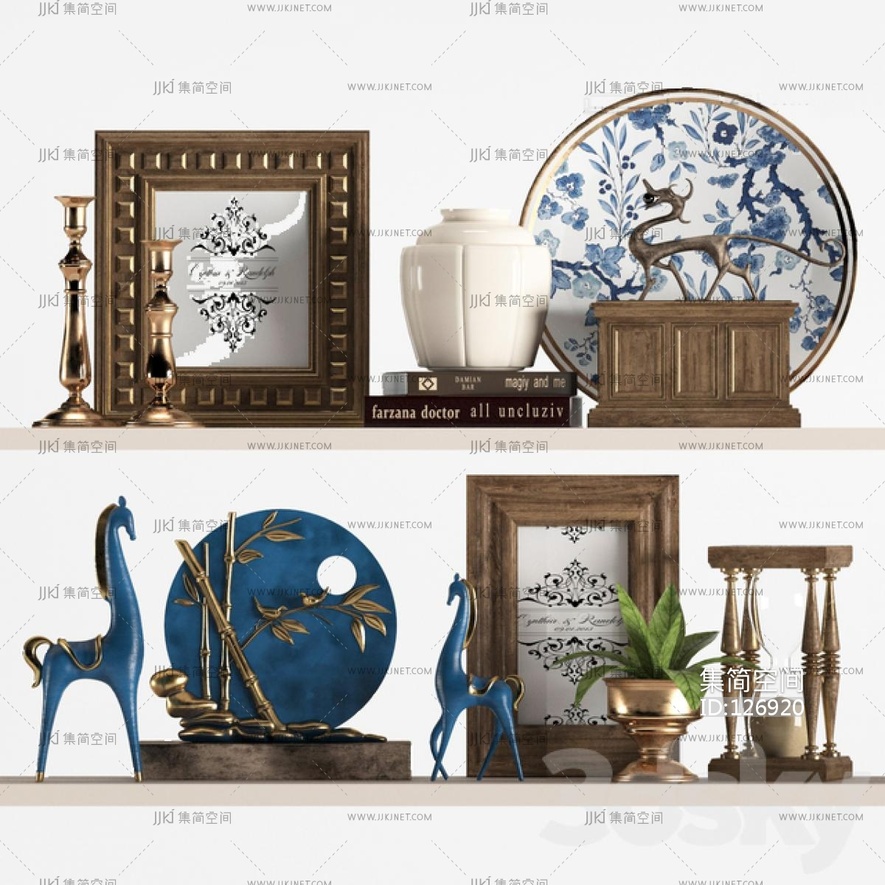 现代新中式雕塑摆件_饰品摆件组合3D模型3d模型下载