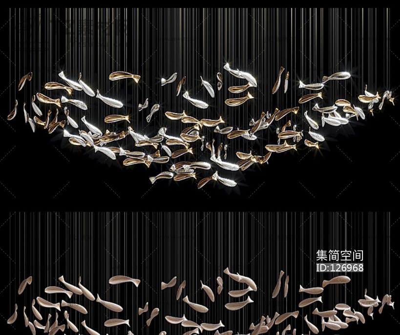 现代金属小鱼吊饰吊灯 3d模型下载 [模型ID:126968]
