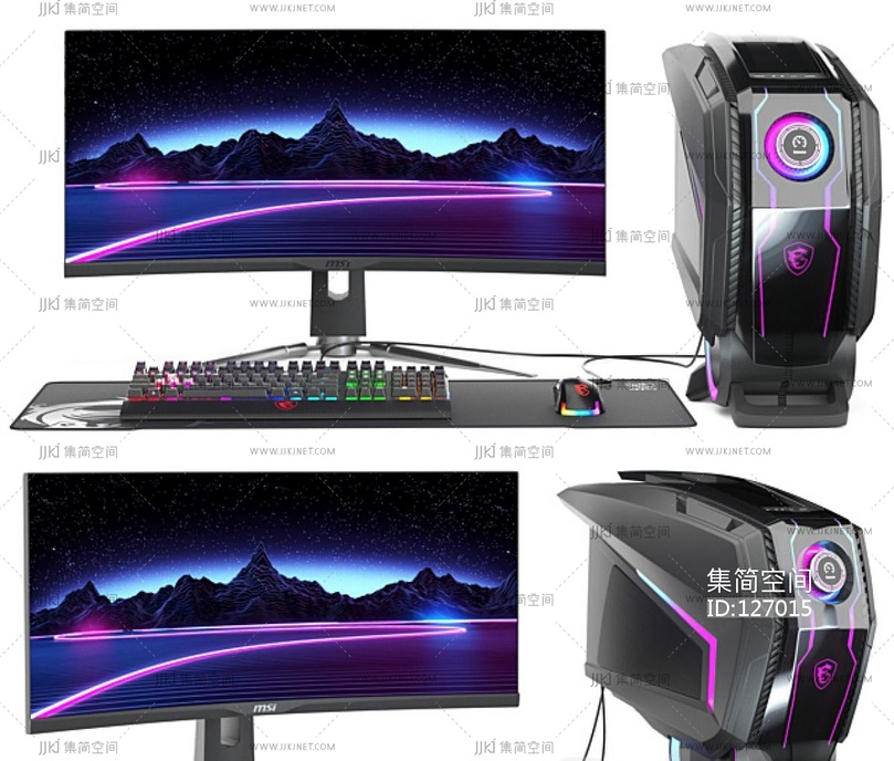 竞技电脑显示器键盘鼠标机箱 3d模型下载 [模型ID:127015]
