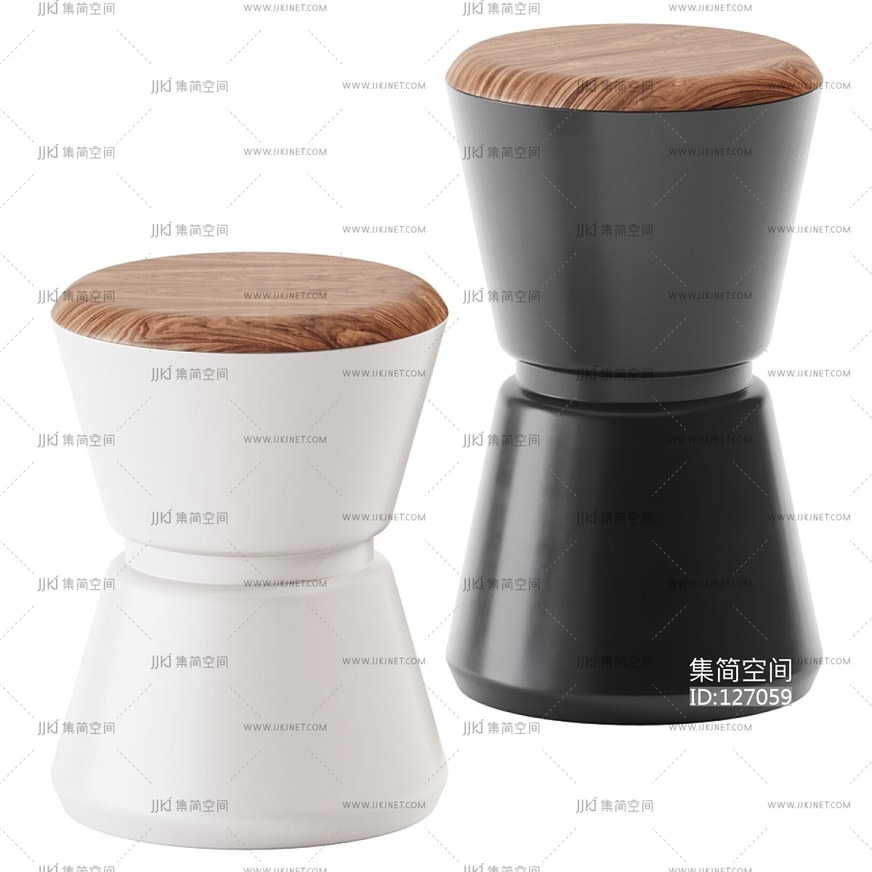 现代实木客厅蘑菇型边几圆几角几3d模型下载