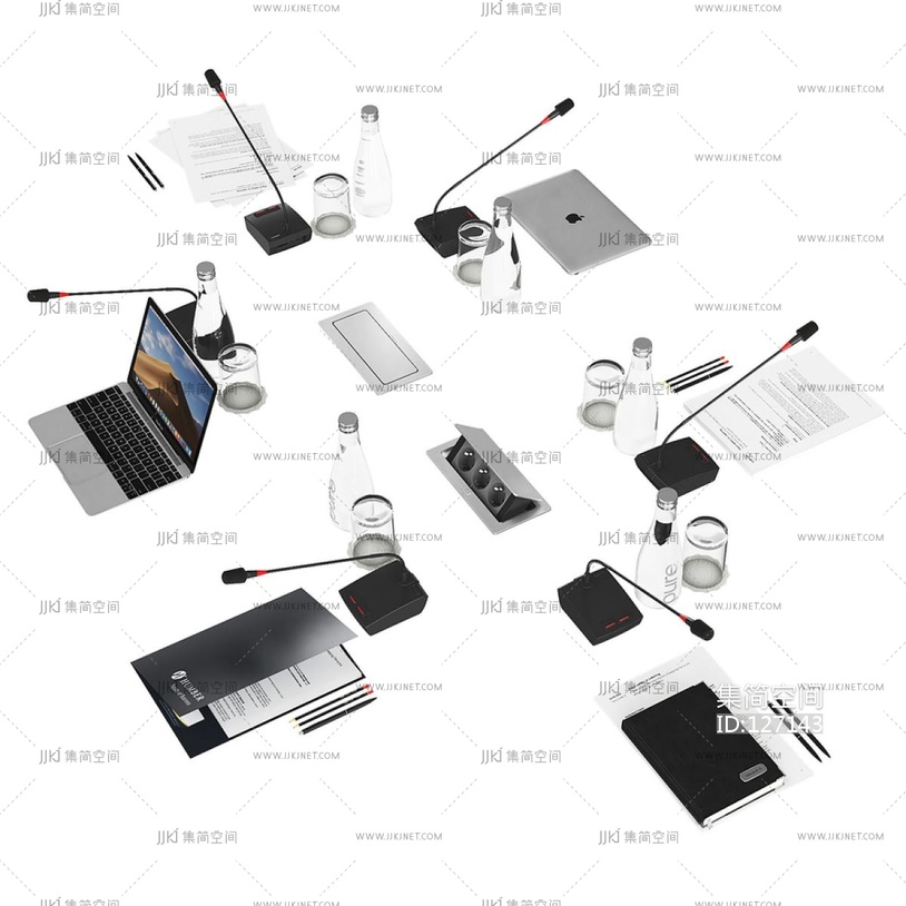 现代会议室电脑麦克风,会议桌用品办公用品 3d模型下载 [模型ID:127143]